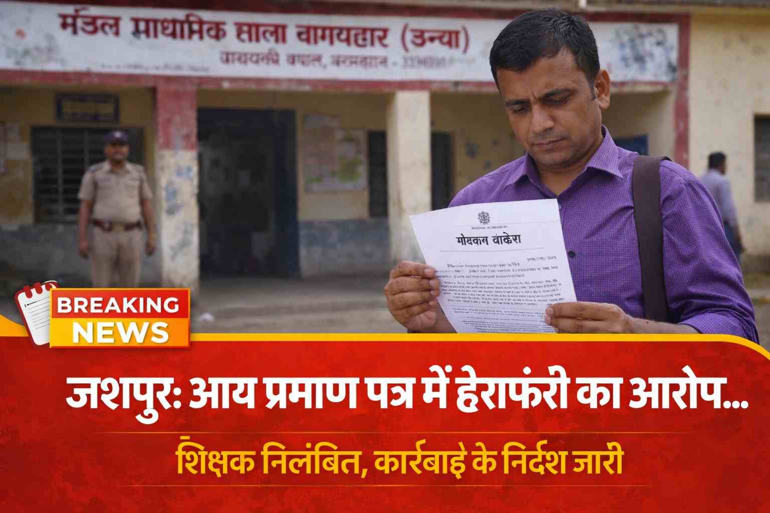 जशपुर: आय प्रमाण पत्र में कथित हेराफेरी मामले में शिक्षक के विरुद्ध निलंबन आदेश जारी