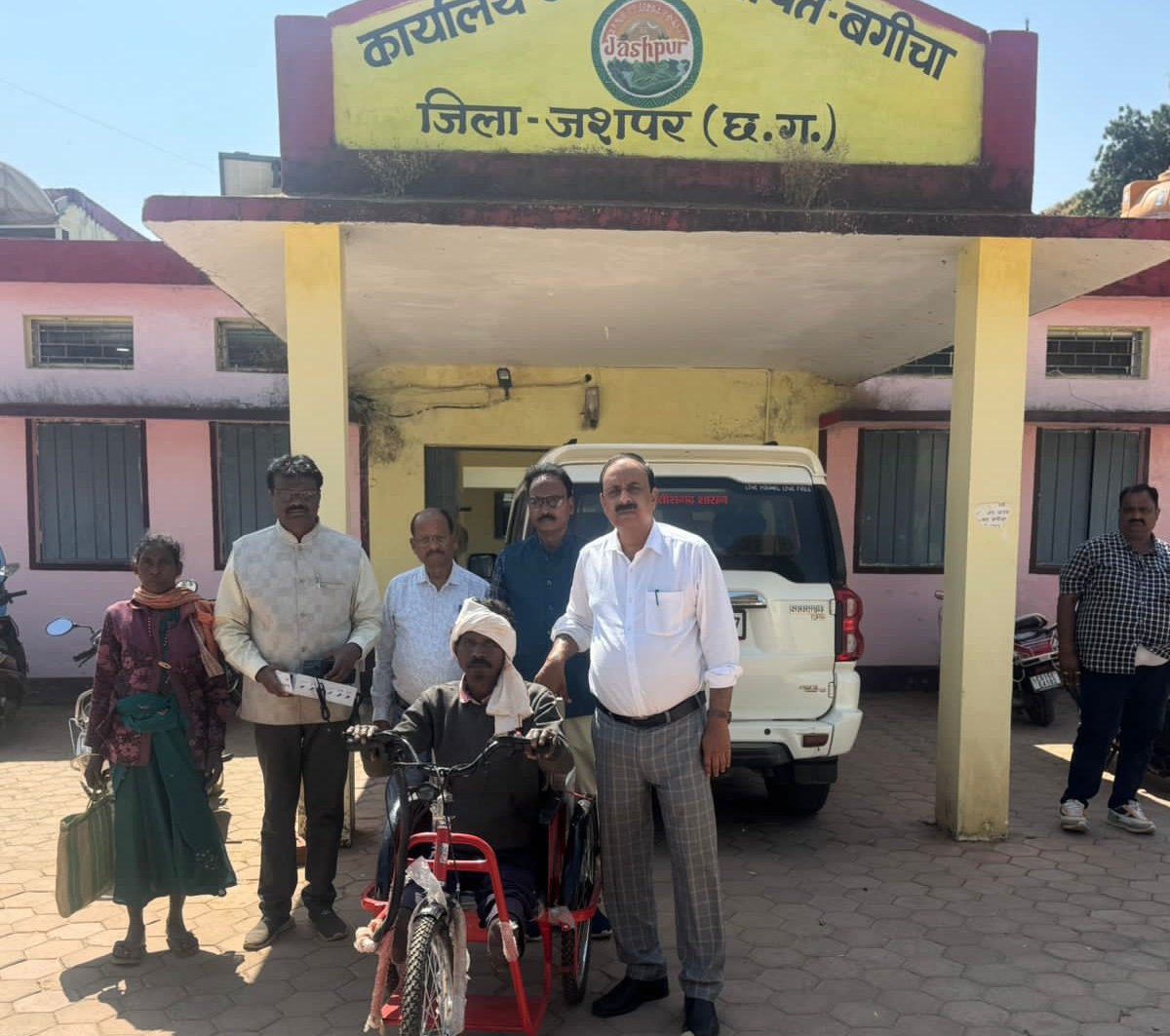 जशपुर: दिव्यांग हितग्राही शनिचर टोप्पो को मोटराइज्ड ट्राई साइकिल प्रदान, कलेक्टर रोहित व्यास के निर्देश पर मिली सहायता