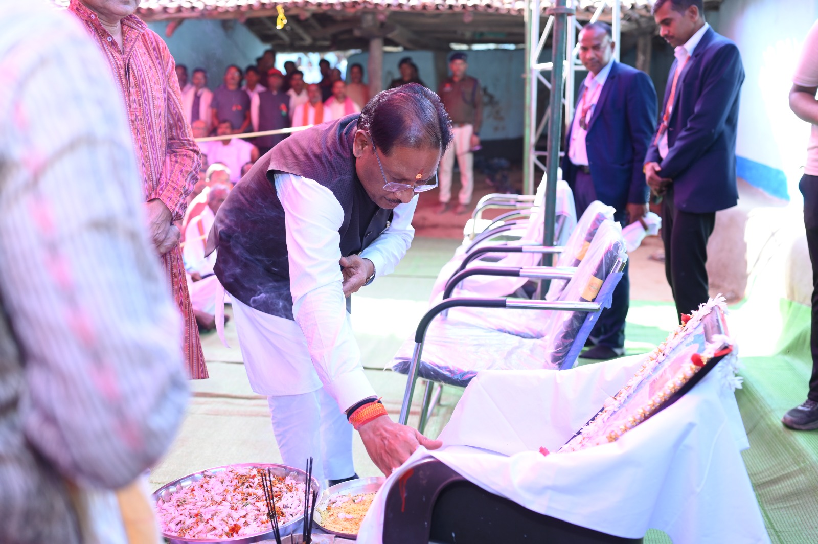 मुख्यमंत्री ग्राम केंदापानी पहुंचकर वरिष्ठ नागरिक स्व. कालेश्वर सिंह के छायाचित्र में पुष्प अर्पित कर श्रद्धांजलि दी