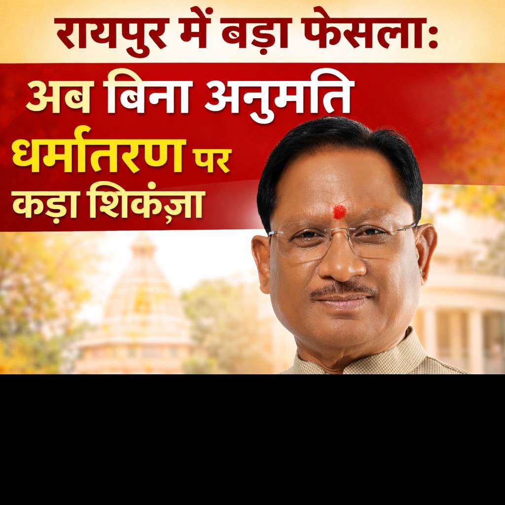 रायपुर: CM विष्णु देव साय का बड़ा नीतिगत फैसला: धर्म स्वातंत्र्य विधेयक 2026 के तहत धर्मांतरण पर कड़ा कानून लागू ,अवैध गतिविधियों पर सख्त नियंत्रण और पारदर्शिता सुनिश्चित