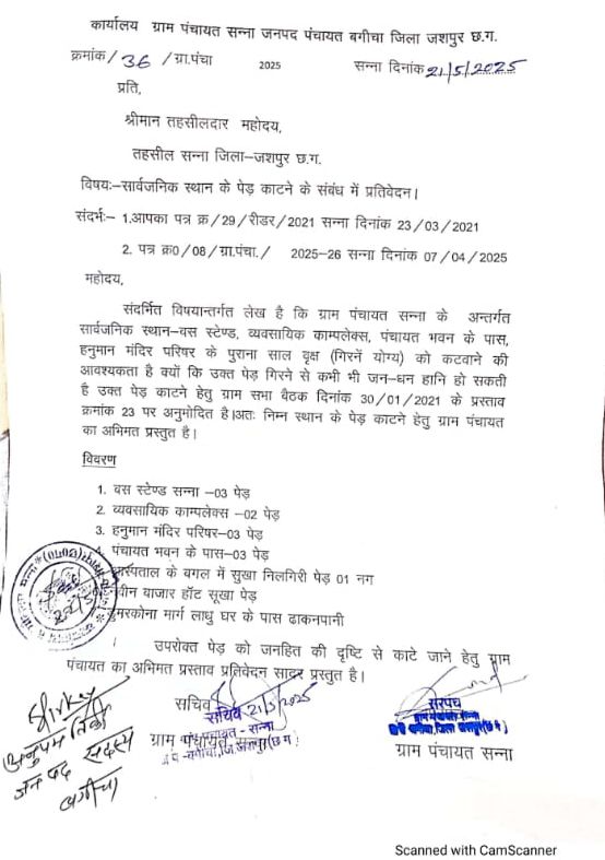 घटना की जानकारी मिलते ही गांव के सरपंच अरविंद कुजूर अपने प्रतिनिधियों के साथ घटना स्थल पहुंचकर हटाने की कयावद में जुट गए हैं। उन्होंने तत्परता दिखाते हुए वन विभाग तथा राजस्व को सूचित किया है । लेकिन खबर लिखे जाने तक पेड़ हटाने की कार्यवाही नहीं की गई थी।