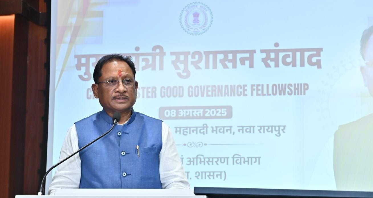 मुख्यमंत्री श्री साय आज मंत्रालय महानदी भवन के पंचम तल स्थित नवनिर्मित सभागार में आयोजित ‘मुख्यमंत्री सुशासन संवाद’ कार्यक्रम को संबोधित कर रहे थे। यह आयोजन IIM रायपुर में अध्ययनरत मुख्यमंत्री सुशासन फेलोशिप के विद्यार्थियों के साथ हुआ, जिसमें मुख्यमंत्री ने आत्मीय संवाद करते हुए उन्हें सुशासन की बारीकियों से अवगत कराया और उनके प्रश्नों के प्रेरणादायक उत्तर दिए।