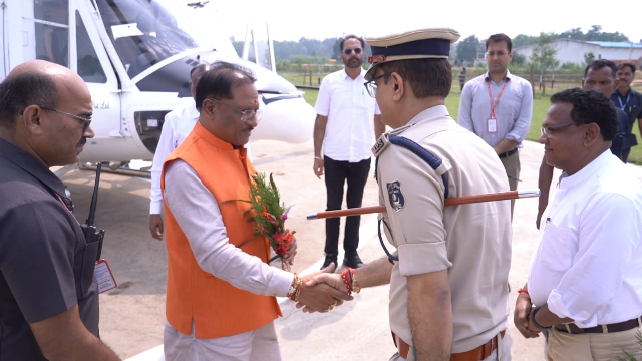 जशपुर 9 अगस्त 25/ मुख्यमंत्री श्री विष्णु देव साय का बगिया हेलिपेड में  कमिश्नर श्री नरेंद्र दुग्गा, आईजी श्री दीपक कुमार झा, जिला पंचायत सीईओ श्री अभिषेक कुमार सहित स्थानीय जनप्रतिनिधियों ने आत्मीय स्वागत किया