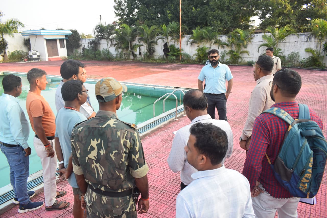 जशपुरनगर, 24 अक्टूबर 2025/ मुख्यमंत्री श्री विष्णुदेव साय के नेतृत्व में जशपुर को खेलों का गढ़ बनाने की दिशा में निरंतर पहल की जा रही है। कलेक्टर श्री रोहित व्यास के निर्देश पर जिला प्रशासन स्वीकृत खेल मैदानों, अकादमियों और स्टेडियमों के निर्माण को गति दे रहा है। साथ ही राज्य स्तरीय खेल आयोजनों की तैयारी भी तेजी से चल रही है, ताकि खिलाड़ियों को बड़े मंच मिल सकें। इसी कड़ी में कलेक्टर श्री व्यास ने गुरूवार को इन्डोर बैडमिंटन स्टेडियम, तरण ताल, जिला चिकित्सालय के समीप इण्डोर स्टेडियम, ताइक्वाडों स्टेडियम और निर्माणाधीन बास्केटबाल स्टेडियम का निरीक्षण किया और आवश्यक दिशा-निर्देश दिए।