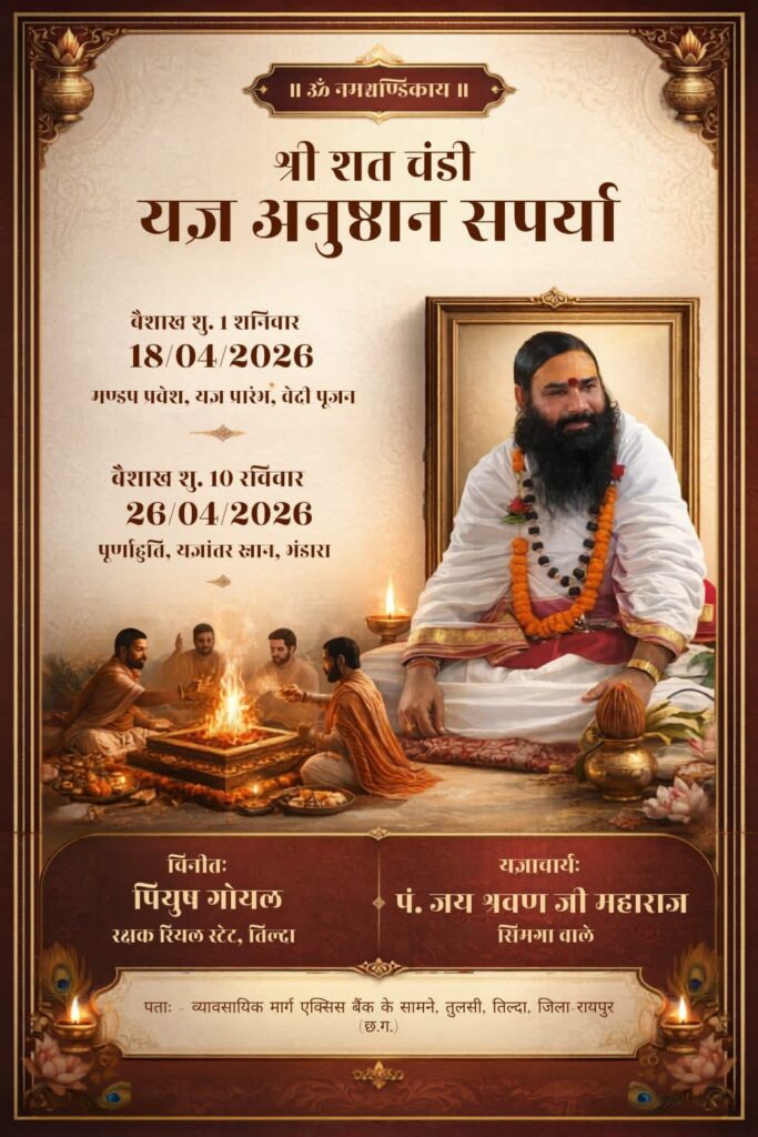 आयोजक पीयूष गोयल (रक्षक रियल एस्टेट, तिल्दा) ने क्षेत्रवासियों और श्रद्धालुओं से अपील की है कि वे अधिक से अधिक संख्या में पहुंचकर धर्म लाभ लें और महाप्रसाद ग्रहण करें। उन्होंने कहा कि यह आयोजन केवल धार्मिक आस्था का केंद्र नहीं, बल्कि सामाजिक समरसता और एकता का प्रतीक भी है।