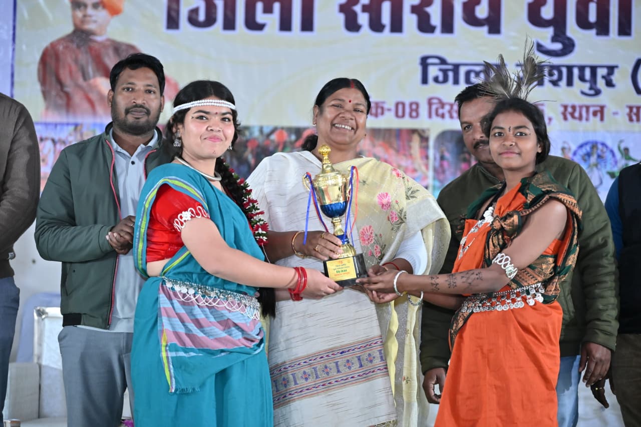 इसी प्रकार सामूहिक वर्ग – लोकनृत्य में विजेता कांसाबेल एवं उपविजेता कुनकुरी, सुआ नृत्य में विजेता कांसाबेल, करमा नृत्य में विजेता पत्थलगांव एवं उपविजेता दुलदुला, लोकगीत में विजेता जशपुर एवं उपविजेता कांसाबेल, विज्ञान मेला में विजेता कुनकुरी एवं उपविजेता मनोरा, राऊत नाचा में विजेता बगीचा और नाटक में विजेता कांसाबेल रहा। इस अवसर पर डिप्टी कलेक्टर श्री समीर बड़ा, श्री संतोष सिंह, श्री अमित साय, शुभम यादव सहित खेल विभाग के अधिकारी-कर्मचारी और बड़ी संख्या में युवा मौजूद थे।