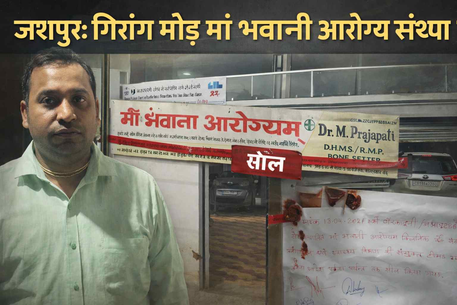 जशपुर, 14 अप्रैल 2026। कलेक्टर श्री रोहित व्यास के निर्देश पर स्वास्थ्य विभाग एवं जिला प्रशासन की संयुक्त टीम ने सोमवार को गिरांग मोड़ दोड़काचौरा स्थित मां भवानी आरोग्य संस्था चिकित्सा केंद्र पर कार्रवाई करते हुए उसे सील कर दिया। निरीक्षण के दौरान संस्था द्वारा छत्तीसगढ़ शासन का वैध पंजीयन दस्तावेज प्रस्तुत नहीं किया जा सका, जिसके चलते इसे अवैध रूप से संचालित पाया गया।