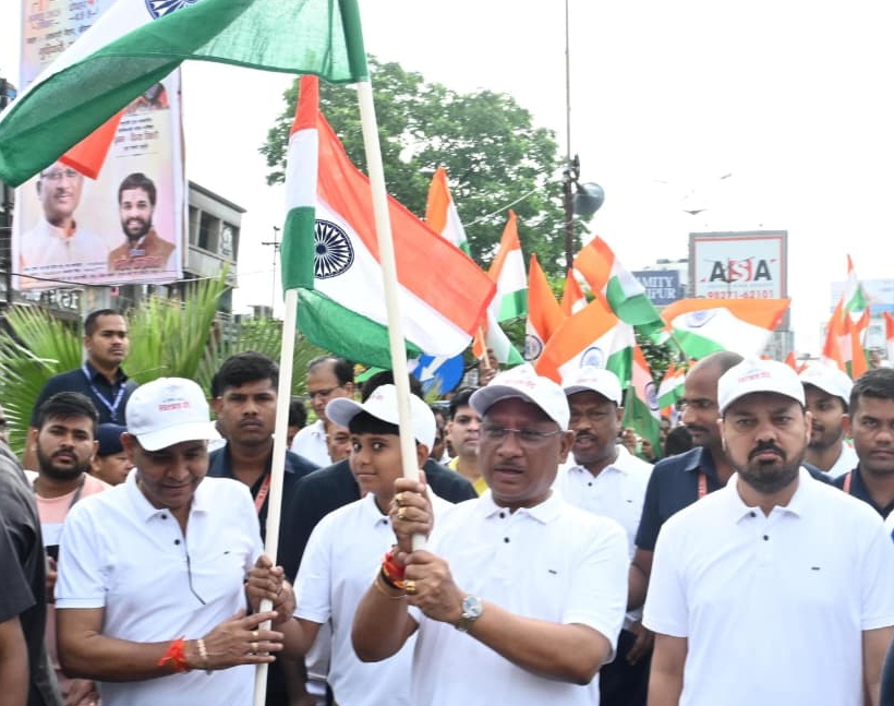रायपुर 14 अगस्त 2025// हमारा तिरंगा पूर्वजों के वर्षों के संघर्षों और बलिदान का जीवंत प्रतीक है। हम सभी तिरंगे की शान को हमेशा बनाए रखेंगे, अपने अमर बलिदानियों को कभी नहीं भूलेंगे और सभी मिलकर विकसित, समृद्ध और सशक्त छत्तीसगढ़ का निर्माण करेंगे। मुख्यमंत्री श्री विष्णु देव साय आज राजधानी रायपुर के मरीन ड्राइव में आयोजित स्वतंत्रता दौड़ में शामिल हुए और कार्यक्रम को संबोधित किया। इस दौरान उन्होंने हजारों युवाओं के साथ स्वतंत्रता दौड़ लगाई और भारत माता और अमर बलिदानी रानी दुर्गावती की प्रतिमा पर माल्यार्पण कर उन्हें नमन किया।