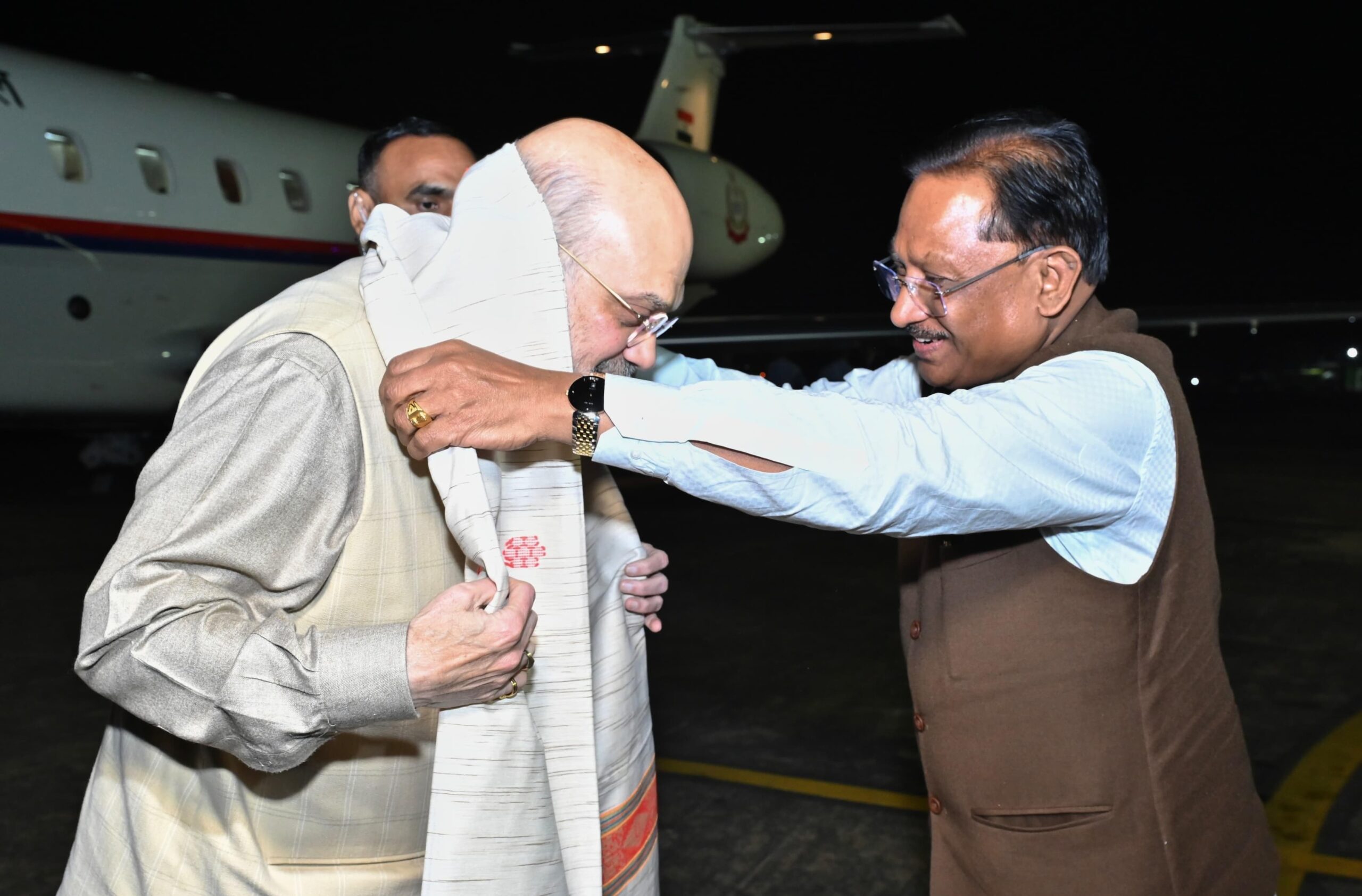 रायपुर 28 नवंबर 2025/ केंद्रीय गृह मंत्री श्री अमित शाह के रायपुर आगमन पर स्वामी विवेकानंद विमानतल में मुख्यमंत्री श्री विष्णु देव साय ने आत्मीय स्वागत किया।
