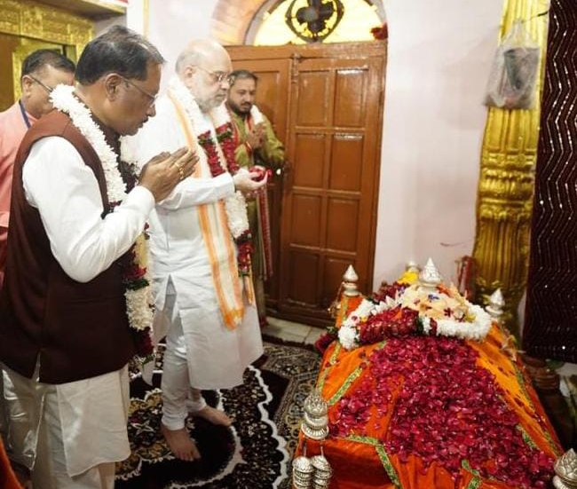रायपुर 4 अक्टूबर 2025/केंद्रीय गृह मंत्री श्री अमित शाह और मुख्यमंत्री श्री विष्णुदेव साय ने जगदलपुर स्थित बस्तर की आराध्य देवी मां दंतेश्वरी के मंदिर में विधि-विधान से पूजा-अर्चना की। उन्होंने मां दंतेश्वरी से देश और प्रदेश की सुख-शांति, समृद्धि एवं खुशहाली की कामना की।